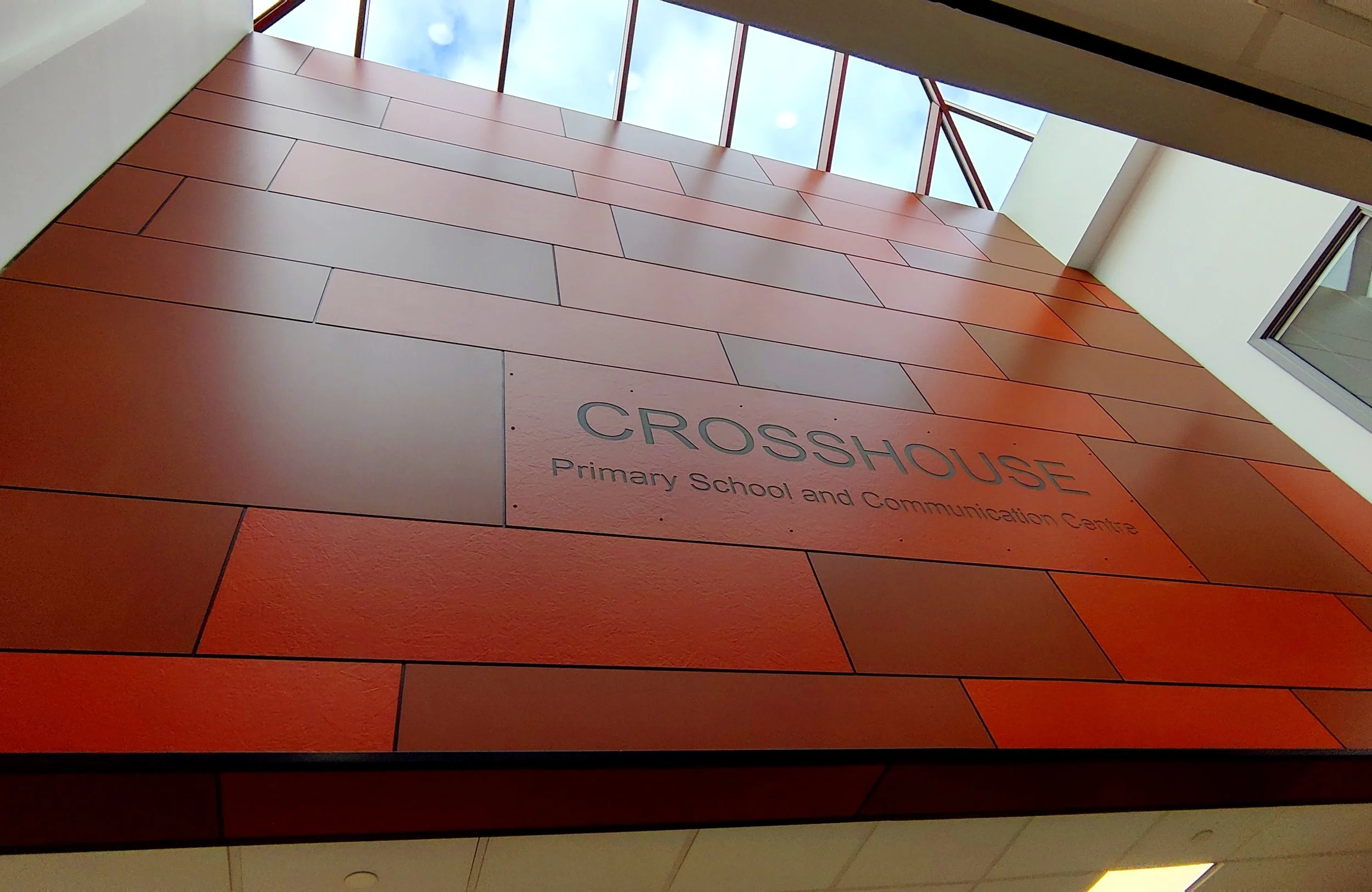 Feature cladding to modern extension of existing crosshouse primary school buildings.