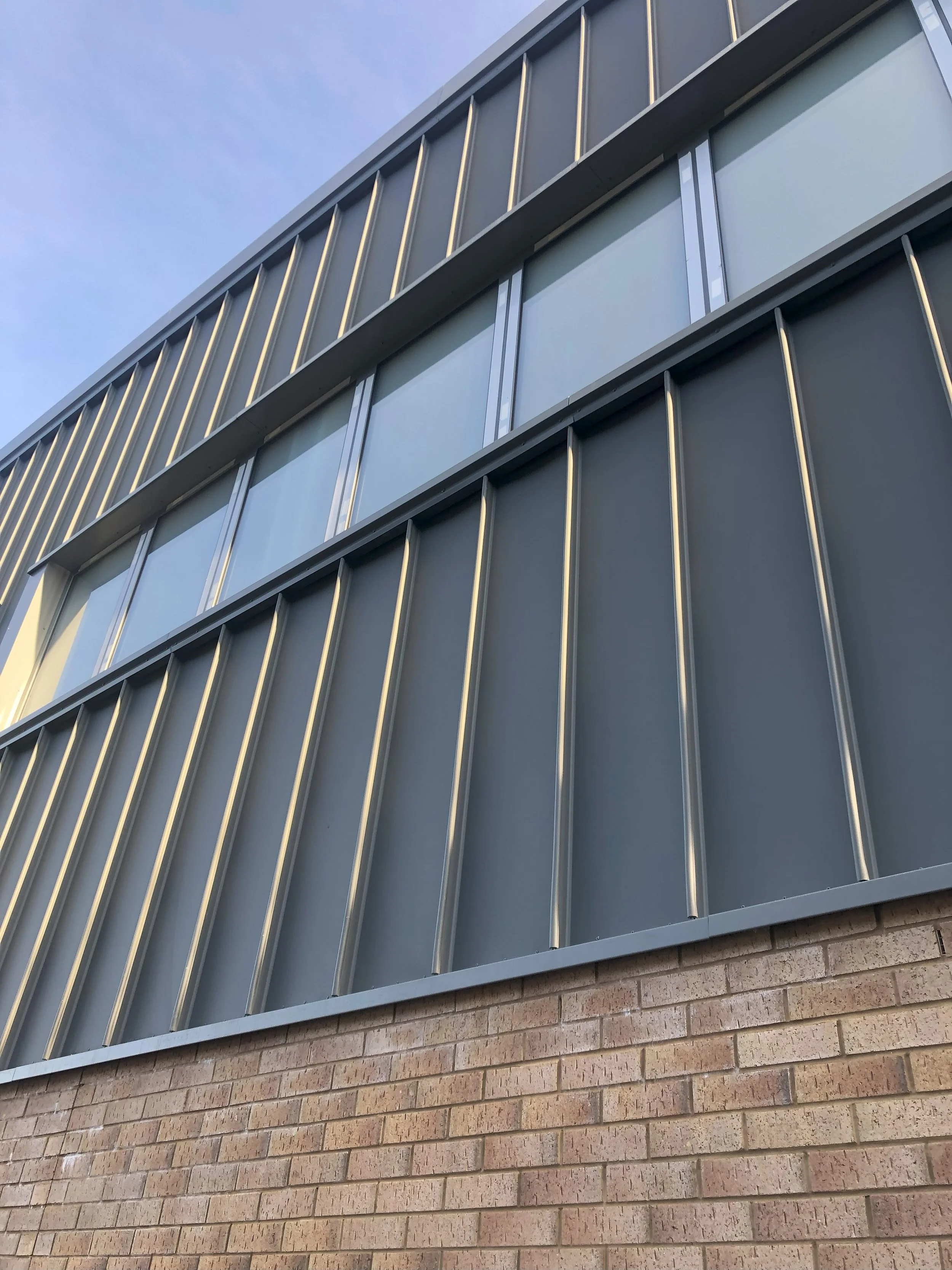 Euroclad Vieo coated steel standing seam cladding in varying colours and widths.